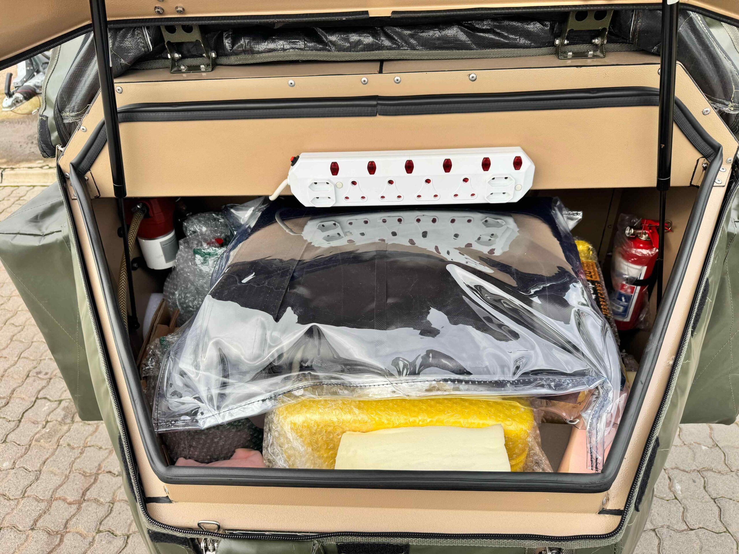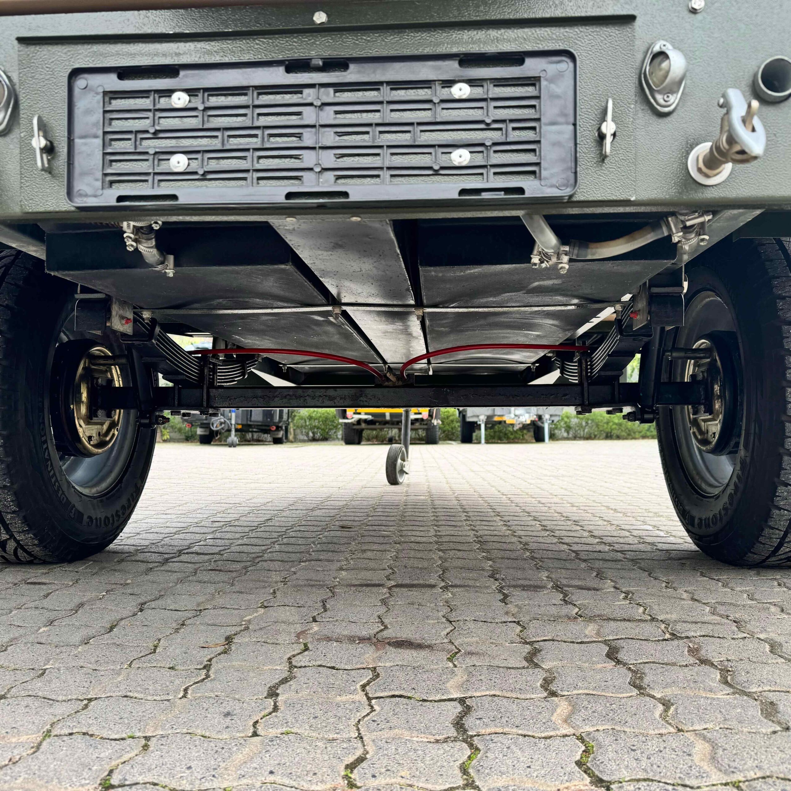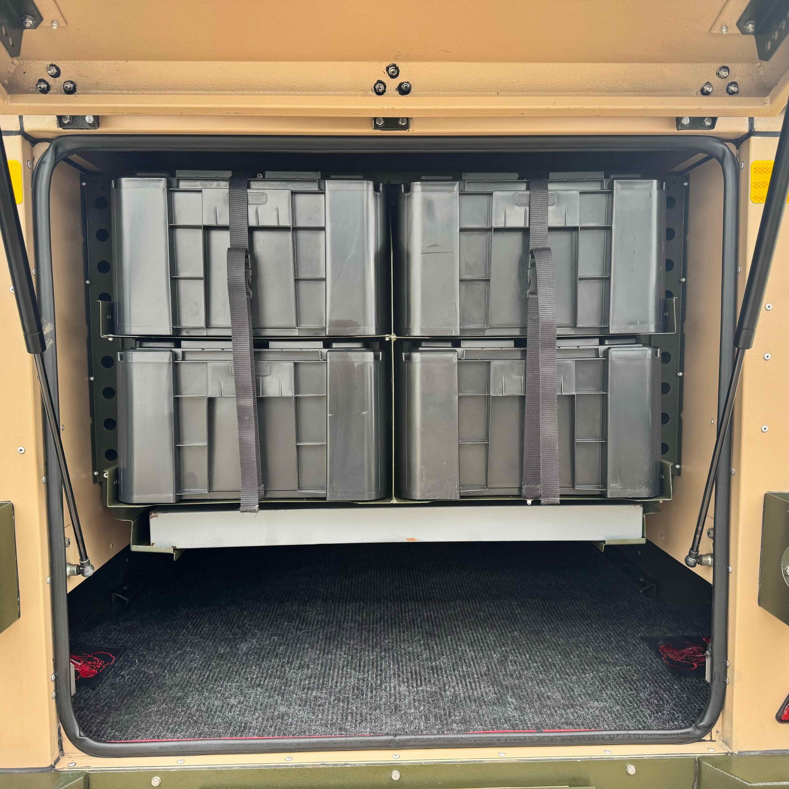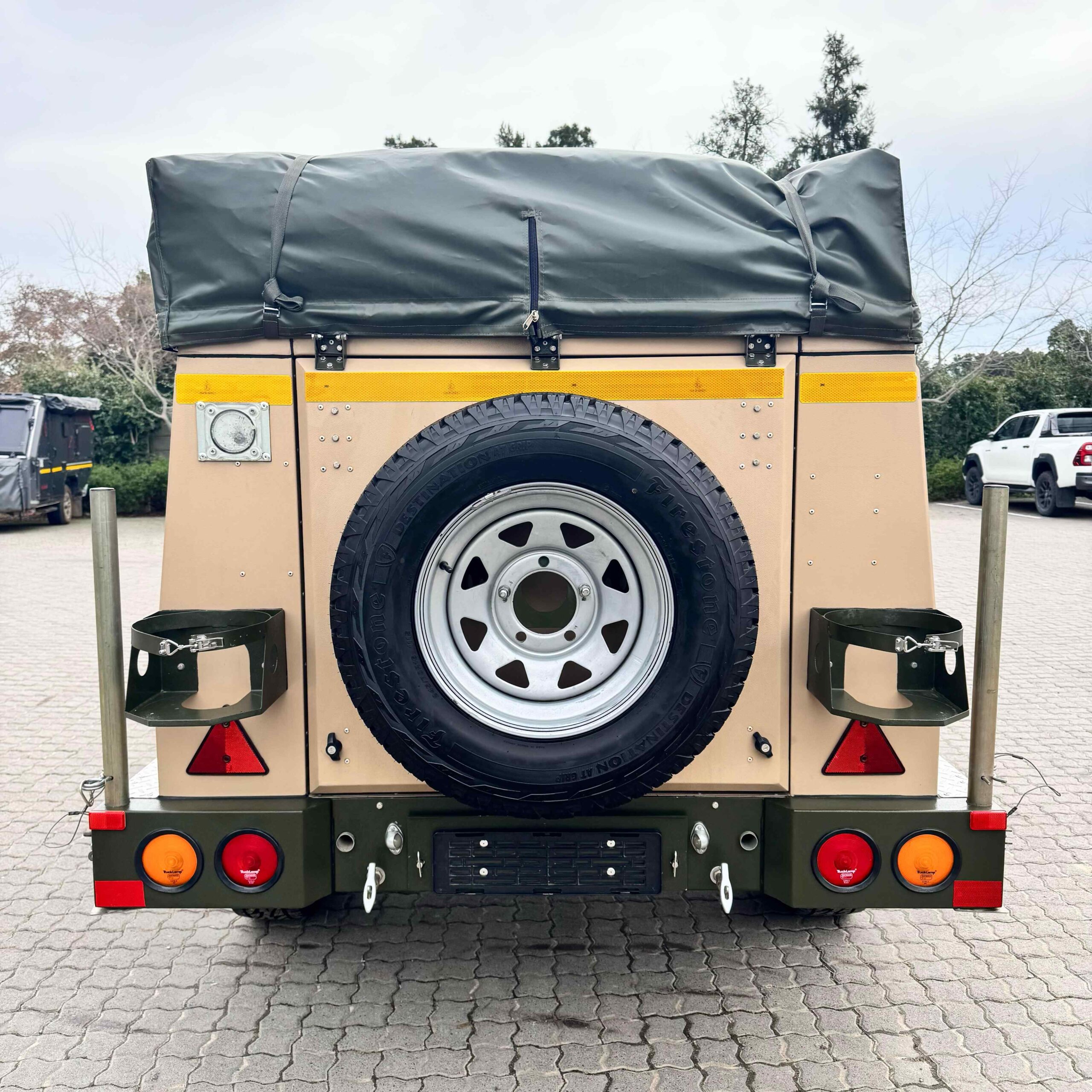 - Mountings for a table, gas bottles, jerry cans, spare wheel, and recovery tools